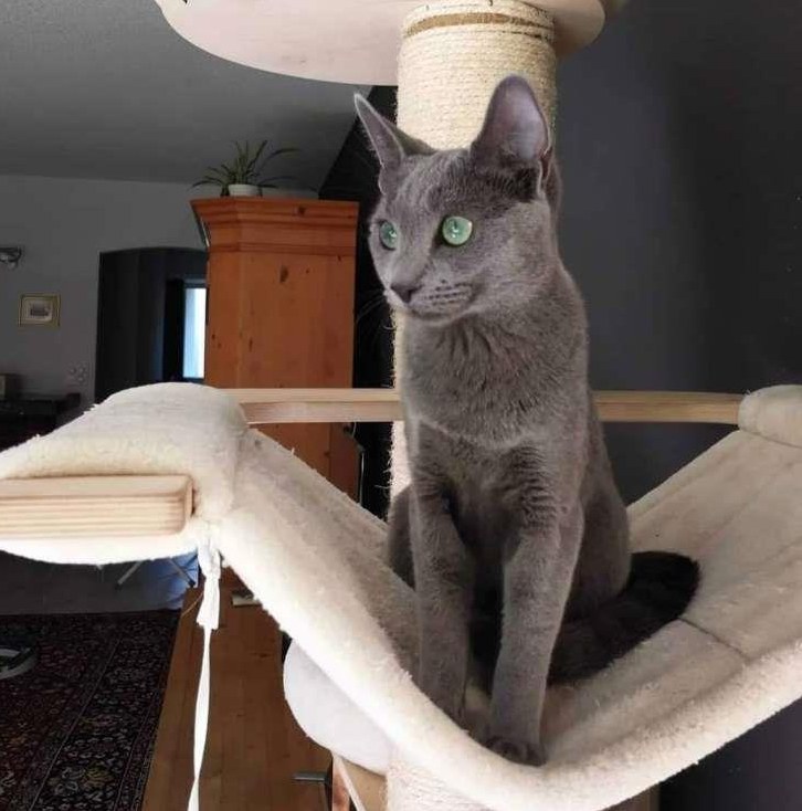 Russisch Blau Katze für 5 Jahre als Zuchtkatze eingesetzt. Im Februar 2023 wurde sie kastriert und fand bei mir in Schwerzenbach, Kanton Zürich, ein neues Zuhause. Leider versteht sie sich nicht gut mit der bereits hier wohnenden Katze. Nach 2 Jahren wurde die