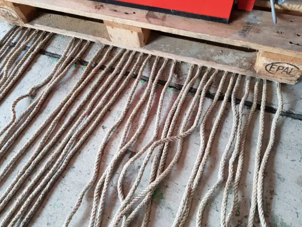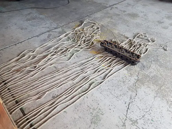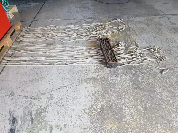 Zum Verkauf stehen insgesamt 28 Stück Nylon Seile mit ausgefranzten Enden. Die Seile haben eine Länge von rd. 1.80 – 2.60 Metern. Die Seile sind gut erhalten und jeweils auf einer Seite mit einer