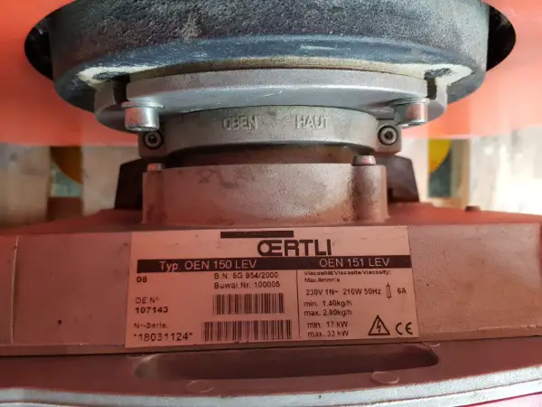 Ölheizung. Die genaue Bezeichnung des Oelbrenners lautet OEN 150 LEV / OE 151 LEV. Mit dem Ölbrenner werden sowohl eine