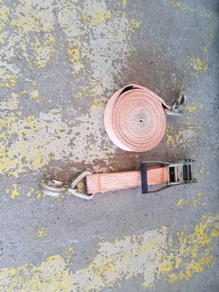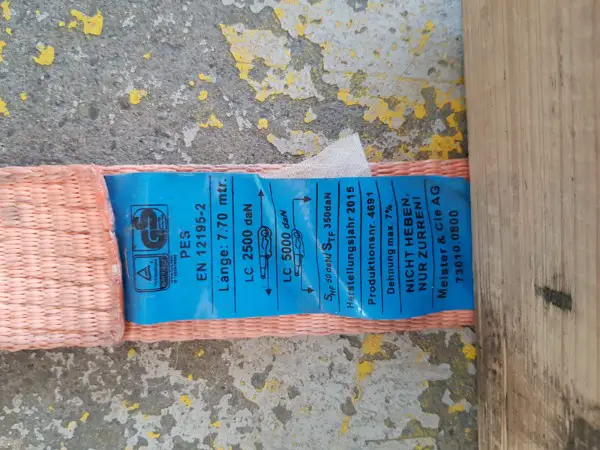 Spanngurt. Der Gurt hat eine Länge von ca. 7.7 Metern. Sowohl der Spanngurt als auch das Band der Ratsche sind unverletzt. Das Set wurde nur einmal benutzt. Der Artikel eignet sich mit Sicherheit für