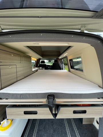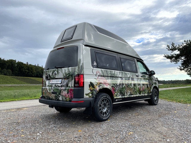 Verkaufsargument: Wichtige Hinweise: Das Fahrzeug kann von Donnerstag 23.10.24 - Montag 28.10.2024 am Caravan Salon in Bern besichtigt werden! Dir gefällt das Fahrzeug aber die Folierung trifft nicht Deinen Geschmack? Kein Problem, diese können wir auf Wunsch auch entfernen. Der Octo-Bus von der deutschen Manufaktur "Fischer-Wohnmobile" überzeugt mit genialen Lösungen, die wirklich Praxis erprobt sind! Dieses spezifische Fahrzeug hat den langen Radstand und ein hochwertiges, festes SCA-Hochdach und bietet ausserordentlich viel Platz, ist aber trotzdem noch städtetauglich. Die gegenüber dem serienmässigen Radstand 40cm mehr sorgen für ein sehr grosszügiges Raumangebot. Dank 4-Motion Allradantrieb mit Hinterachssperre, grösserer All-Terrain Bereifung und dem starken 204 PS Motor hält diesen VW Bus so schnell nichts auf! Das i-Tüpfelchen ist das Verstärkte Seikel-Fahrwerk vorne und hinten, welches für eine ausreichende Bodenfreiheit sorgt. Dieses Fahrzeug ist zudem ausserordentlich gut ausgestattet. Der Innenraum ist hochwertig verarbeitet und überzeugt mit den sehr variablen und praxisgerechten Umbaumöglichkeiten. Die Sitze sind alle einzeln von einer Person herausnehmbar und stufenlos versschiebbar, der Beifahrersitz ist drehbar. Es können auf Wunsch und gegen Aufpreis bis zu 6 zugelassene Sitze realisiert werden. Das untere Bett ist innert Sekunden bereit, es müssen nur die Sitzlehnen der hinteren Sitze geklappt werden. Das untere Bett weist einen Lattenrost und eine Spezialmatratze auf, welches sich einfach zusammen ausrollen lässt und einen hervorragenden Schlafkomfort bietet. Zudem ist es mit knapp 1.30m deutlich breiter als bei gängigen VW Bus Ausbauten. Der Bettumbau funktioniert auch bei ausgebauten Sitzen. Ein zweites Bett, ebenfalls sehr komfortabel mit Matratze und Lattenrost befindet sich im hochwertigen Hochdach. Der ganze Bus lässt sich bis auf die schmale Küchenzeile innert Minuten ausräumen und macht sich auch als Transporter sehr gut! Der hochwertige 2er Gaskocher ist serienmässig herausnehmbar und lässt sich problemlos auch draussen betreiben, da die Gassteckdose und ein Schlauch ebenfalls Serie ist. Der grosse 48L grosse Kompressorkühlschrank lässt sich auch von aussen nutzen, ohne das jedes Mal ins Fahrzeug geklettert werden muss. Der variable und stabile Tisch lässt sich sowohl innen als auch aussen als Steh-Bar nutzen. Ein grosses, rundes Lavabo mit einem 20L Wasserkanister (erweiterbar) sowie der innenliegende und frostsichere Abwassertank sind Serie. Auch eine Warmwassertherme ist hier mit an Bord. Geheizt wird mit einer leistungsstarken Autotherm Dieselheizung, welche für perfekte Wärmeverteilung sorgt. Beste Isolation sowie der warmluftdurchströmte Doppelboden sorgen für sehr angenehme Temperaturen und das Fahrzeug eignet sich daher auch gut für einen Wintereinsatz. Im Gegensatz zu bekannten VW Bus Ausbauten basiert dieser Ausbau auf einem Transporter und nicht auf einem Kombi oder Multivan. Dadurch können viel praxistauglichere Fenster aus dem Campingbereich verwendet werden, welche deutlich besser Isolieren, (bei Hitze und Kälte) auch geöffnet werden können, wenn es regnet und perfekte Verdunkelungs- und Mückenrollos aufweisen. (Mückenschutznetze sind auch am Heck und bei der Schiebetür vorhanden) Weitere Ausstattungsdetails: - VW T6.1 Transporter - 2.0 TDl mit 204 PS und 7-Gang Automatik (DSG) - 100% Hinterachssperre - Serien-Lackierung in "ascot grey" - robustes SEIKEL Fahrwerk DESERT HD (ca. +4cm Bodenfreiheit) - verstärkte 17" Alufelgen mit Cooper Discoverer AT3 Sport2 All-Terrain-Bereifung - erhöhtes Gesamtgewicht von 3'200kg inkl. Auflastung auf 3'500kg - LED Hauptscheinwerfer, LED Rückleuchten, Nebellampen - Navigationssystem "Discover Pro" inklusive "Streaming & Internet", DAB+ etc. - Digital-Cockpit mit Müdigkeitserkennung - Klimaanlage mit elektrischer Regelung - beheizbare Scheibenwaschdüsen - Rückfahrkamera und Parksensoren vorne & hinten - grösserer 80L Dieseltank - abnehmbare Anhängerkupplung (2'500kg Anhängelast) - Kotschutzlappen vorne und hinten - vollwertiges Reserverad - Luftfilter für staubreiche Länder inkl. Sättigungsanzeige - Multifunktions-Lederlenkrad - ACC, automatischer Abstandassistent mit Tempomat mit Begrenzer - Spurwechselassistent "Side-Assist" - Light Assist - Front Assist - Lane Assist - Ausparkassistent - Verkehrszeichenerkennung - Akustik-Paket für bessere Geräuschisolation - elektrische Zuziehhilfe Schiebetür - Multifunktions-Lederlenkrad - stärkere Batterie & stärkerer Alternator - Kraftstoffbetriebene Zusatzheizung (keine Standheizung) - 4 Funk-Klappschlüssel - und vieles mehr! Details zum Ausbau: - komplette Küche mit Kocher und Grillplatte - SCA Hochdach mit seitlichem Dach-Teilausbau und Bettanlage - optional mit Porta-Potti Toilette oder Trenntoilette Trelino - Verdunkelungs-Kit und Isolationspolster für vordere Scheiben und Heckscheibe - 230V Anlage mit Ausseneinspeisung - div. Steckdosen 230V / 12V / USB - LiFePo4 Batterie, 85Ah - 1x hochwertiges Solarpanel von Solar Swiss, 160Wp - Wechselrichter 600W 12V/230V - Autotherm Diesel-Luftheizung - Aussendusche - div. Staufächer - aktuell 4 Sitzplätze, erweiterbar auf 5-6 Sitzplätze - Stauraummanagement im Heck mit zwei Schubladen - 5L Warmwassertherme - Kompressorkühlschrank ca. 48L - TopRail Kederleiste beidseitig am Fahrzeug - und vieles mehr! Gerne zeigen wir Ihnen dieses spannende Fahrzeug mit all seinen Möglichkeiten! Unsere Gewichtsangabe: Wussten Sie, dass sehr viele VW T6 mit Ausbau (California etc.) oft nur eine äusserst geringe Nutzlast aufweisen? Einige Anbieter weisen teilweise sehr optimistische Werte aus, die meist nicht der Realität entsprechen. Unser angegebenes Leergewicht beinhaltet das effektiv in CH gewogene Fahrzeug, alle aufgelisteten Optionen, einen vollen Dieseltank und 75kg für den Fahrer. So verbleibt bei diesem Fahrzeug eine sehr gute Zuladung von ca. 600 kg! Wir berechnen keine 