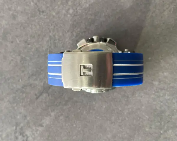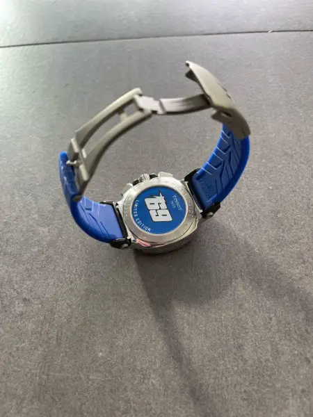 Bevor Tissot das Design neu gestaltet, ist dies ihre Originaluhr, die als Grundlage für ihre limitierten Motorsportstücke dient. Die Gehäuselünette und der Kronenschutz ähneln einer Bremsscheibe und einem Rotor. Die Lünette ist tatsächlich drehbar und kann bei korrekter Einstellung zur Anzeige der GMT-Zeit verwendet werden. Obwohl das Gehäuse „einzigartig“ ist, ist es tatsächlich recht komfortabel.