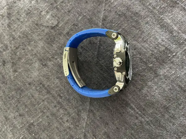 Es handelt sich um eine blaue Sammleruhr aus Stahl mit einem einzigartigen Design. Ein Muss für jeden Uhrenliebhaber und perfekt als