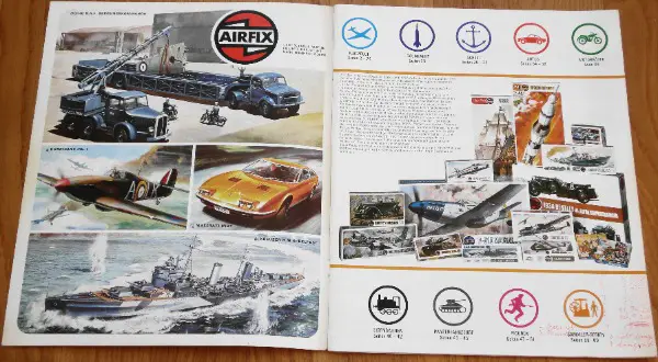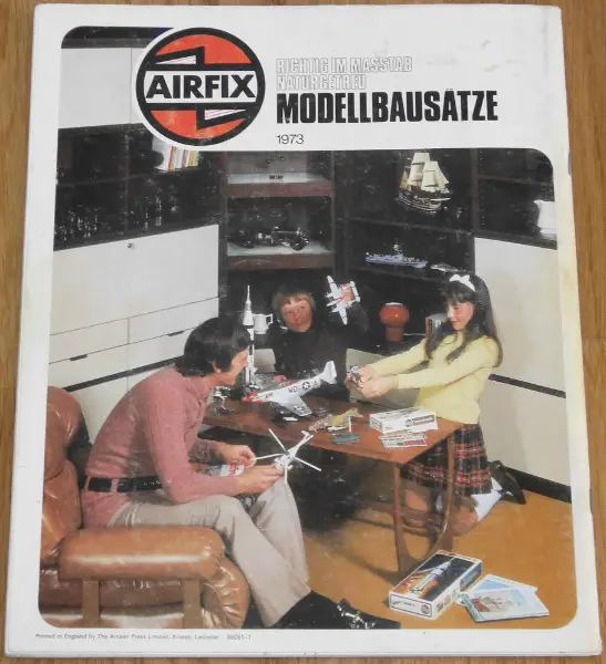 Airfix Katalog von 1973, deutsch, Format 23 cm x 28 cm, 64 Seiten, vollständig, gebrauchter Zustand, das Cover weist teilweise starke Gebrauchsspuren auf, es sind alle Seiten markiert / beschriftet.