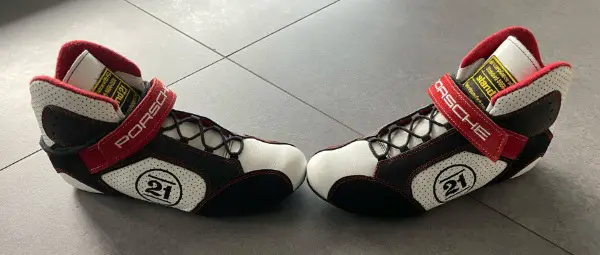 Porsche Rennschuhe in Weiss/Schwarz/Rot, Grösse 40.