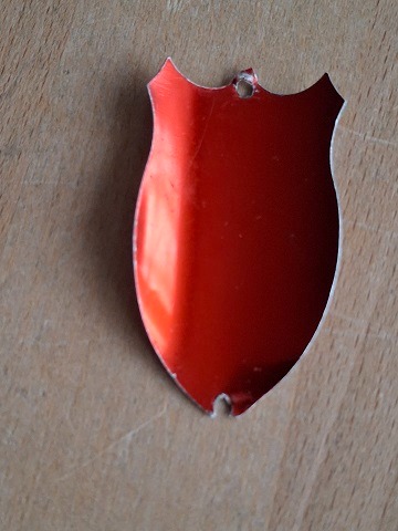Ernst Mittelholzer. Fabrikat. Schweizer Markenschild. Material Aluminium. ca. 1960. Lochabstand Mittig gemessen 45 mm. Höhe 50 mm. Breite 28 mm. Gebogene Höhe 11 mm.