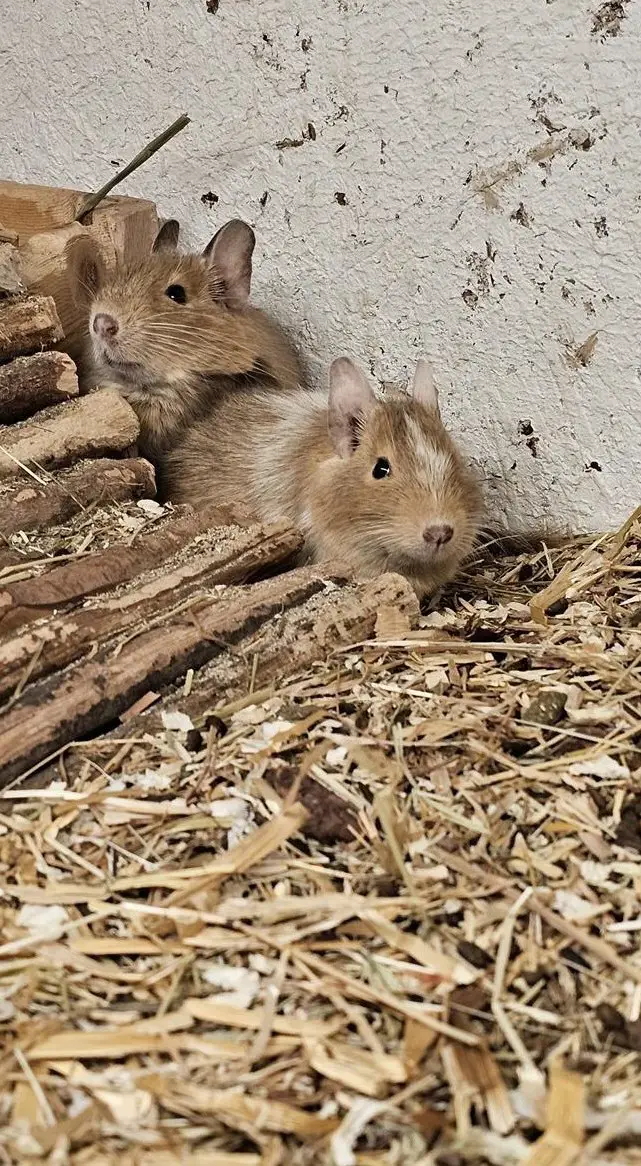 Leider muss ich mich von meiner 3er Degus Gruppe trennen. Ich bin letztes Jahr erkrankt und schaffe es einfach nicht mehr den Tieren gerecht zu werden. Die Degus sind ca. 3 1/2 Jahre alt.