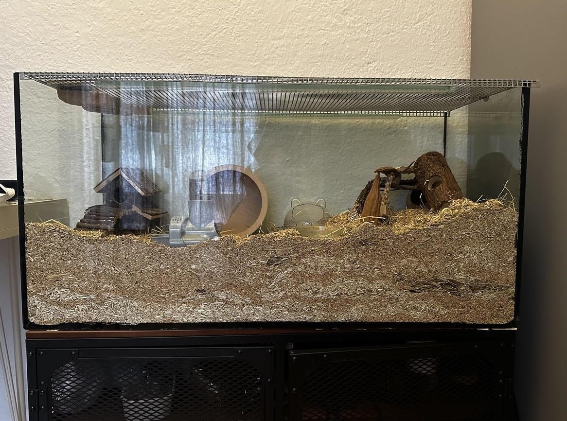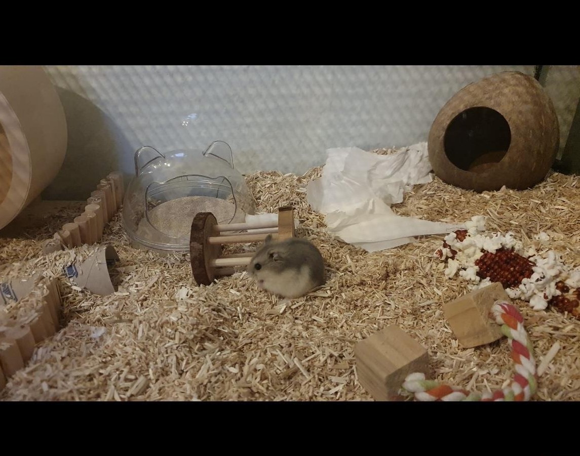 Sack Sand und ein wenig Futter dabei. Bilder davon sind weiter unten enthalten. Wir suchen für die kleine ein neues Zuhause, da wir im Sommer die Möglichkeit erhalten haben eine längere Reise anzutreten und aus unserem Umfeld das Tierchen leider niemand übernehmen kann. Die Zwerghamster Dame lässt sich leider nicht so gerne auf die Hand nehmen, jedoch wenn man sie mit Futter motiviert, lässt sie sich streichel. Sie ist sehr neugierig und kommt oft aus ihrem Häuschen, wenn jemand das