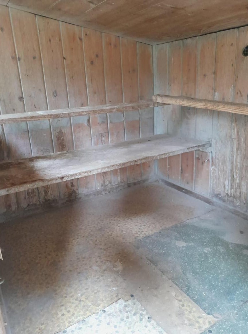 Ebenfalls hat es 2 Fenster 1 Tür und Lüftungsaussparungen, ist für