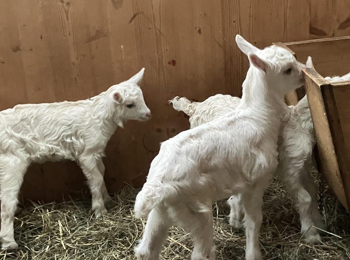 Mütter sind Pfauenziegen und Pfauen x Neraziegen, Vater stammt aus Zucht gehörnter Appenzeller.