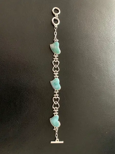 - Wunderschöne Armkette mit 3 Herzformen Larimar Steinen