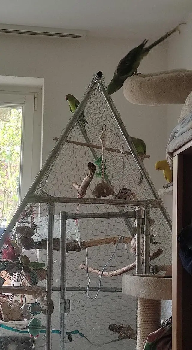 Sittich zwei grüne zusammen lieben sich leider hat ein grüner eine Unterschnabel den man einmal im Monat kürzen muss mit dem Nagelknibser bis zur rille beim Schnabel einfache Sache.