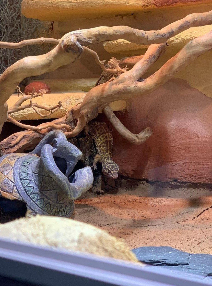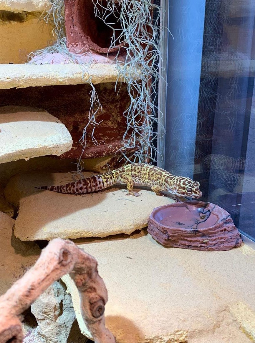 Leopardgecko-Dame Gaia sucht ein neues, liebevolles Zuhause in Einzelhaltung. Sie ist eine wunderschöne und ruhige Leopardgecko Dame, die es bevorzugt, allein zu leben. In der Gruppenhaltung hat sie leider eine Ellbogenluxation erlitten. Diese wurde erfolgreich behandelt, und das Beinchen ist korrekt zusammengewachsen. Das Gelenk bleibt jedoch dauerhaft ausgerenkt, was ihre Lebensqualität jedoch nicht beeinträchtigt.
