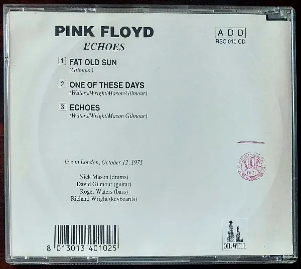 Pink Floyd, "ECHOES". Gemäss Inlay aufgenommen in London, UK am 12.10.1971, denke die Aufnahme ist vom 30.09.1971 im Paris Theatre, London