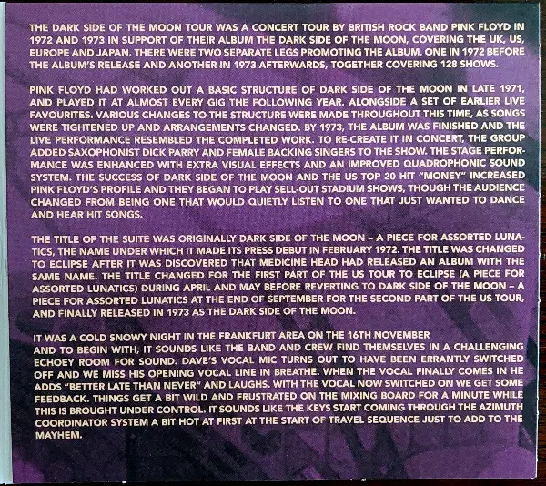 Die Konzertaufnahme von 1972 enthält die vollständige Aufführung von The Dark Side Of The Moon!