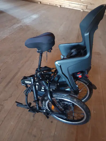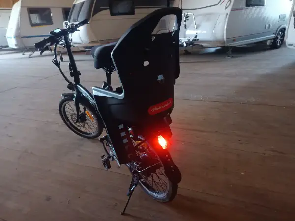 Der Kinder sitz ist am Gepäck Träger montiert und kann, falls erwünscht, mitgegeben werden.