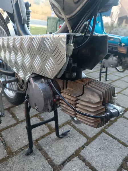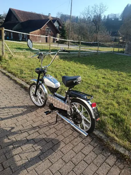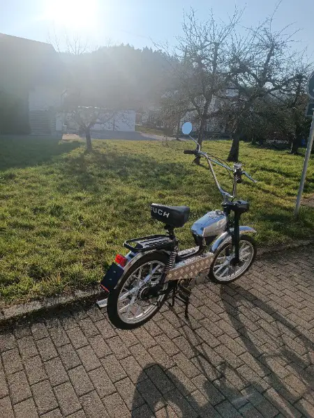 Das Mofa ist neu aufgebaut und kostet 1750. Es ist ein Puch Enduro mit E50 Motor, neu gelagert, neue Dichtungen, neuer Auspuff.