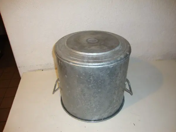 Verkaufe einen alten selten gebrauchten Blechbehälter mit zwei Handgriffen mit den Massen: Höhe 32cm Durchmesser 32cm Dieser ist dicht in einem guten zustand zum gebrauch oder als Deko Vorauszahlung zuzüglich 11.50 Versand.