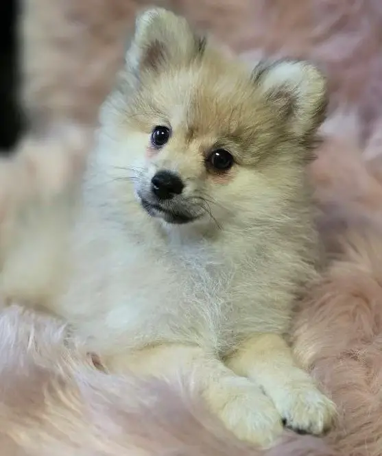Die Zwergspitz Welpen sind reinrassig und gewöhnt auf die Auflage zu gehen.