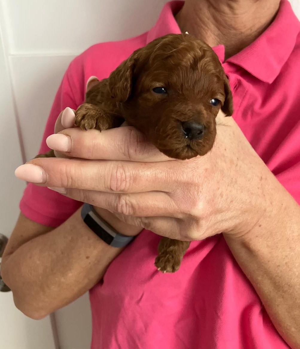 Mini Pudel) in Farbe Fawn (Apricot und Red) .