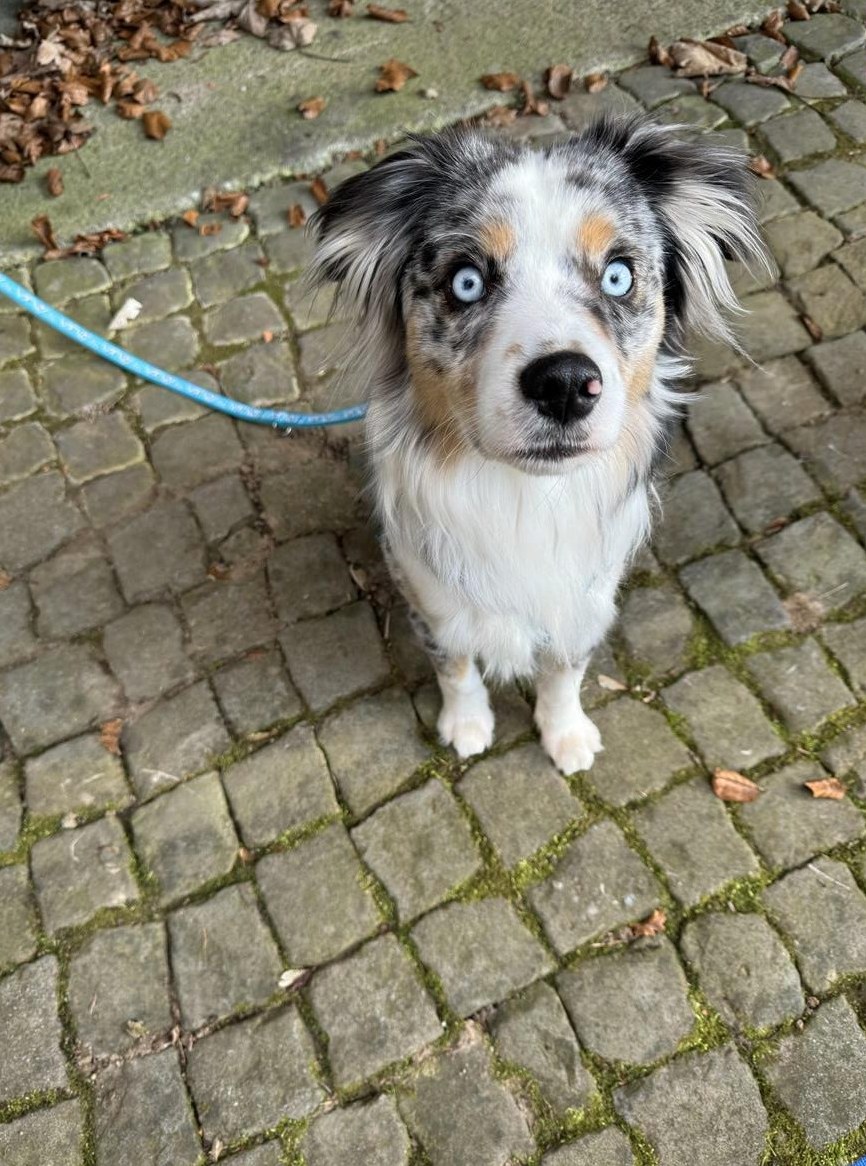 Hund der noch einiges lernen muss. Grundgehorsam ist vorhanden sollte jedoch noch etwas mehr gefestigt werden. Gilby badet sehr gerne im Wasser und liebt ausgedehnte Spaziergänge in der Natur. Der Mini Aussie