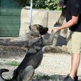 Garten. Da er so kräftig ist und vor Freude auch mal gerne bei den Leuten hochspringt, sehen wir ihn nicht bei Kleinkindern.