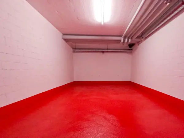 Durch die gemauerten / betonierten Wände ohne Fenster ist der Raum nicht einsehbar und Diskretion ist garantiert. Er verfügt über Deckenbeleuchtung, Stromanschluss und Lüftung. Der Raum ist trocken. Die Türschlüssel funktionieren für den Raum und die
