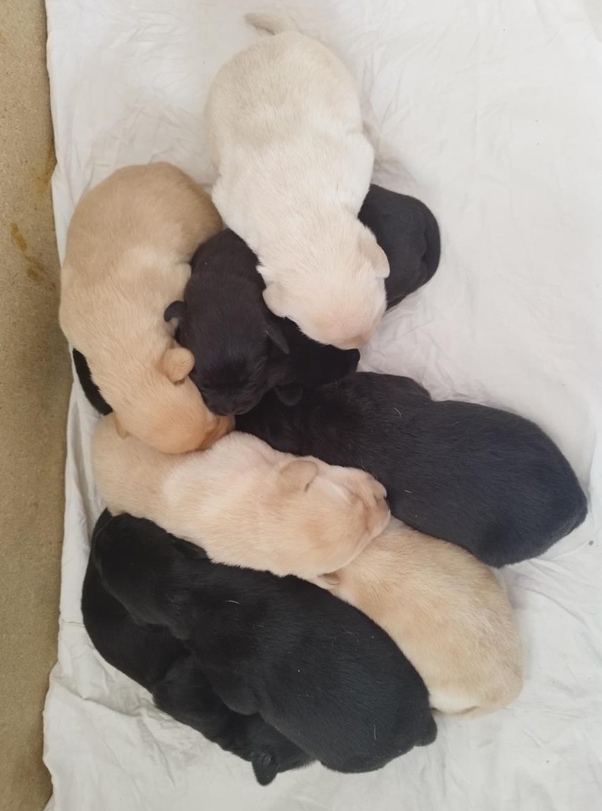 Unsere Labrador-RetrieverHündin hat Neun reinrassige Welpen bekommen (ohne Stammbaum) . In den Farben Beige (Gelb) und Schwarz. Die Labrador Welpen wachsen bei uns liebevoll auf dem Land mit Kindern und verschiedenen Tieren auf.