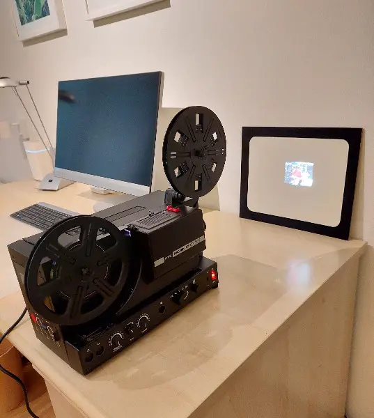 Der Filmprojektor mit leichten Gebrauchsspuren wurde nochmals getestet, funktioniert einwandfrei und ist in einem sehr guten Zustand!