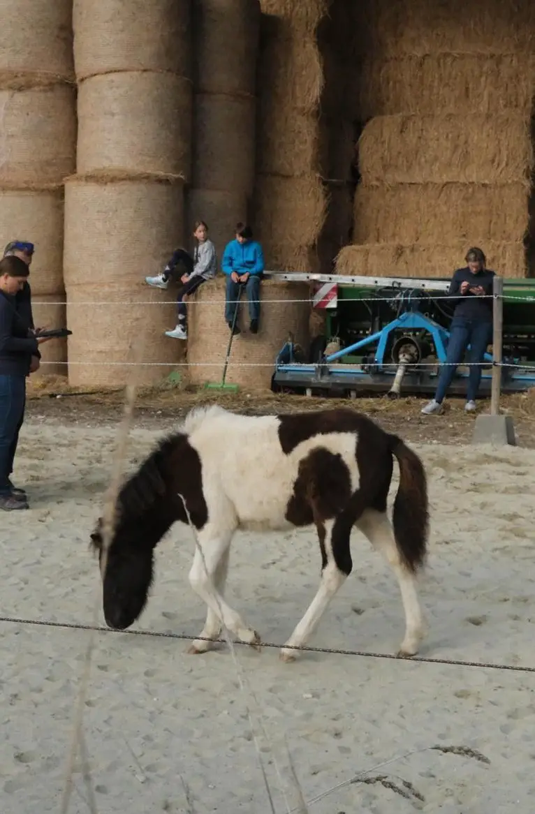 Hálfmáni kennt das Halfter und geht an der Longe, er ist regelmässig entwurmt und geimpft.