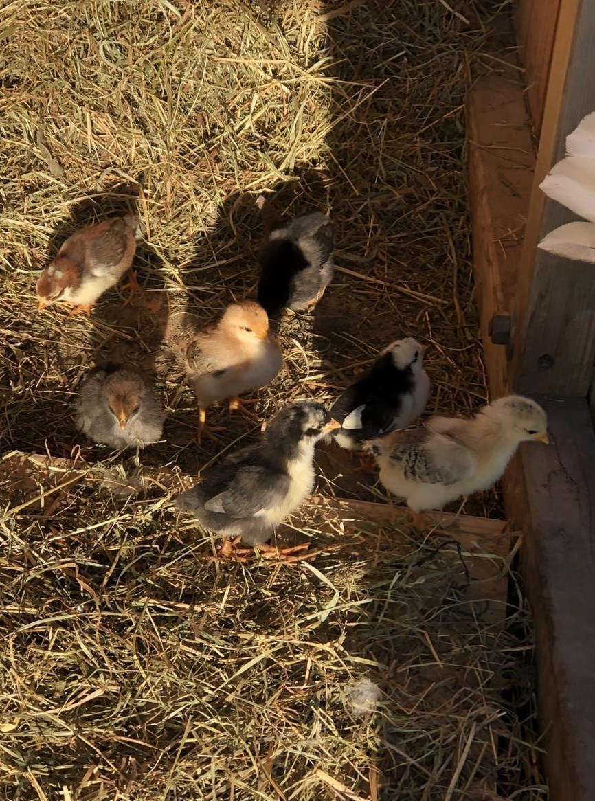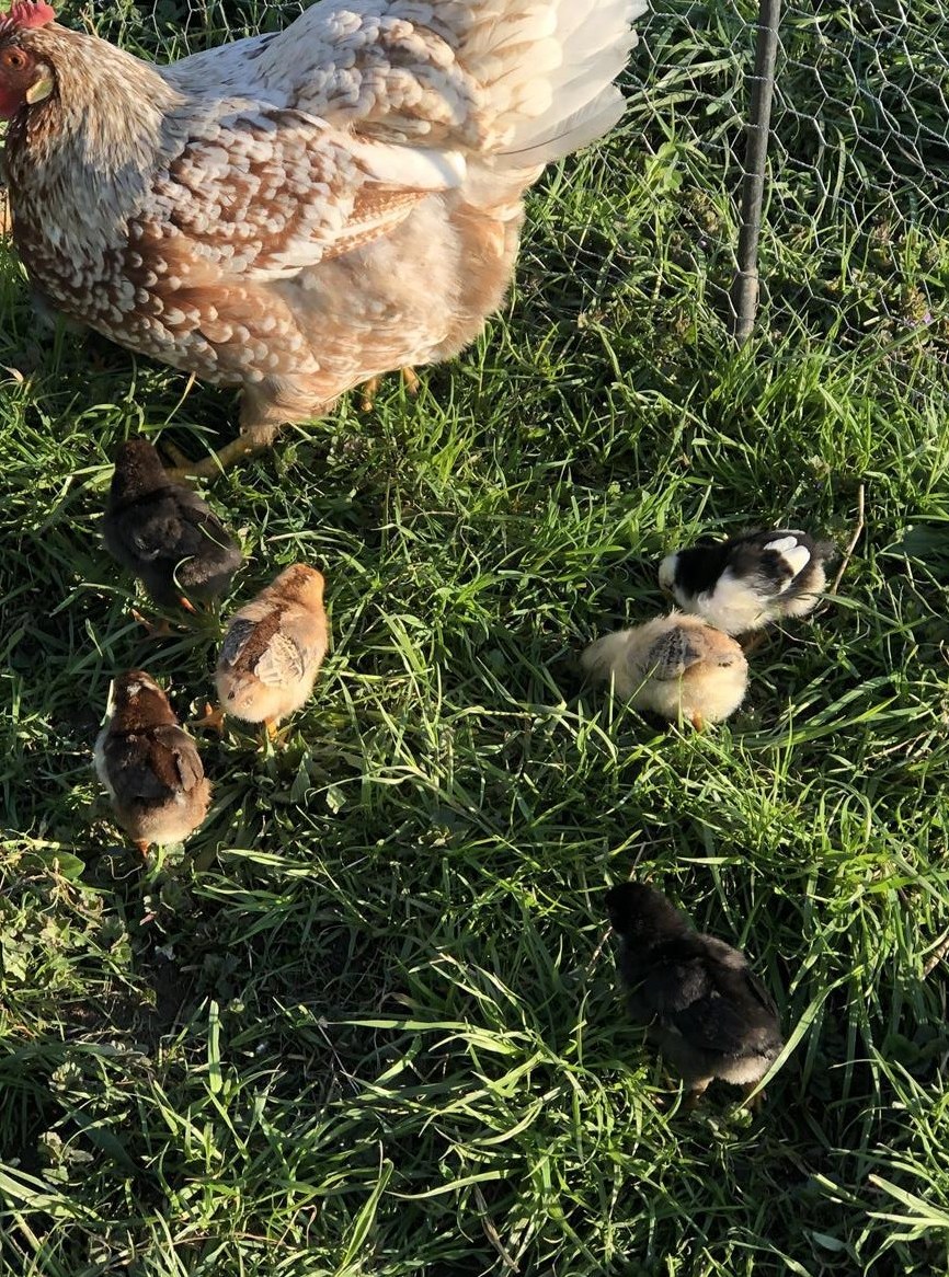 Mischung aus Blumenhühner und Altsteier, möglicherweise auch reinrassige Blumenhühner dabei.
