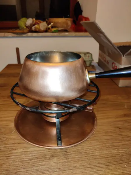 1x Fonduetopf aus Kupfer mit Edelstahl-Innenbeschichtung