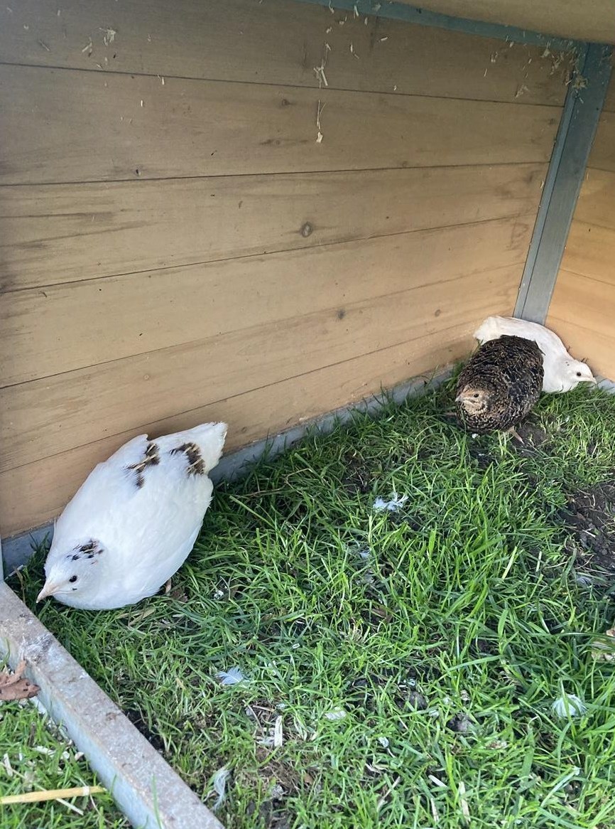 Hennen sind eher scheu, da wir uns aufgrund Zeitmangel nicht allzu sehr mit ihnen beschäftigen konnten und sie uns dementsprechend nicht angewöhnt sind. Die Wachteln Hennen müssen manuell ins obere Stockwerk gehoben werden, da die Treppe ihnen zu steil ist.