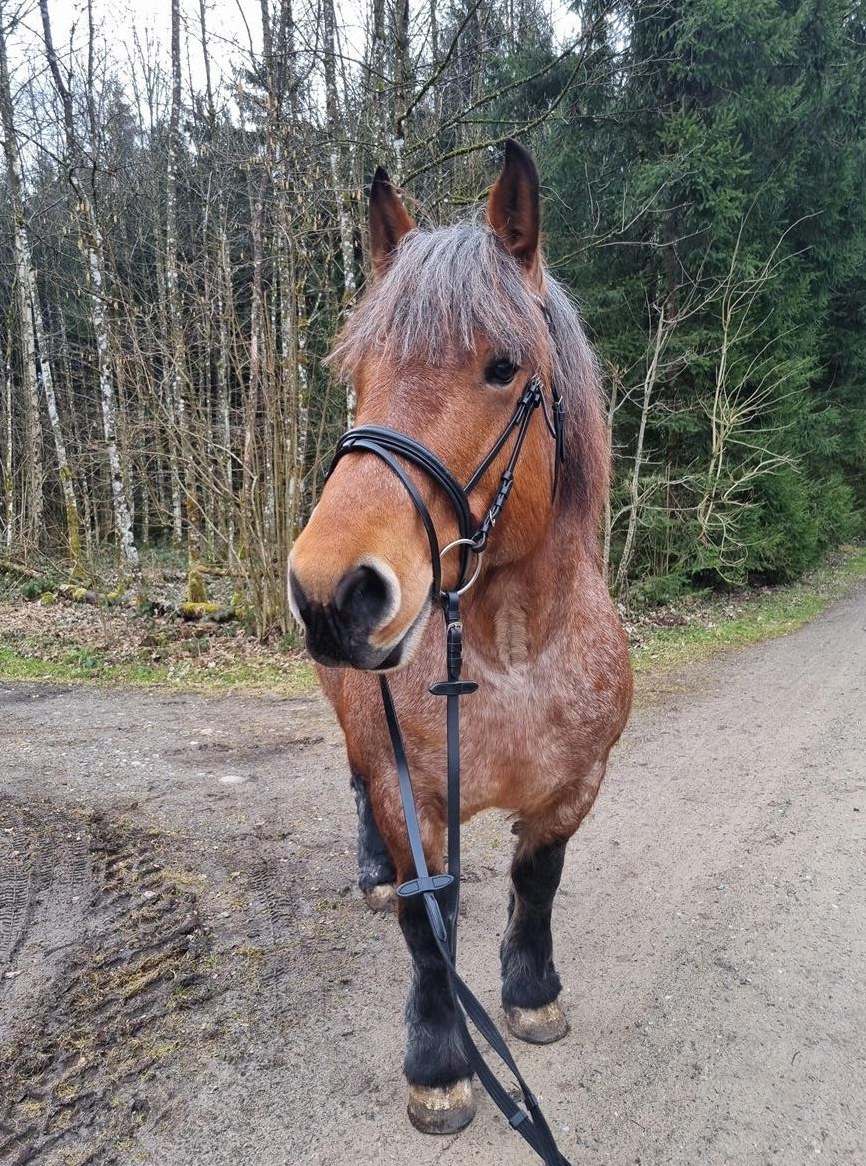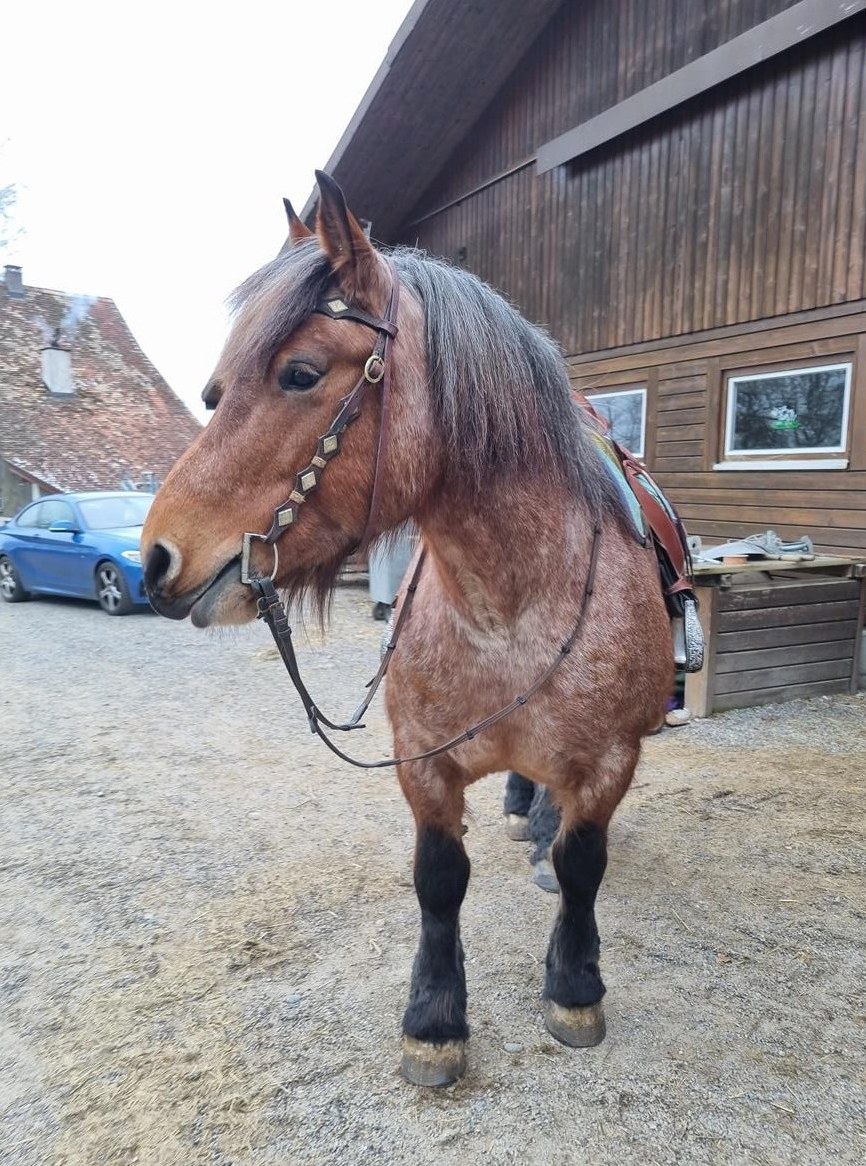 Wir sind rein freizeitmässig unterwegs im Gelände alleine oder zu zweit. Die Stute ist ein absolutes Verlasspferd, jedoch braucht sie manchmal einen Reiter der ihr die nötige Sicherheit bietet. Die Stute ist aber kein Durchbrenner oder Bocker. Einfach manchmal im Gelände etwas guckig. Absoluter Schatz beim Schmied.