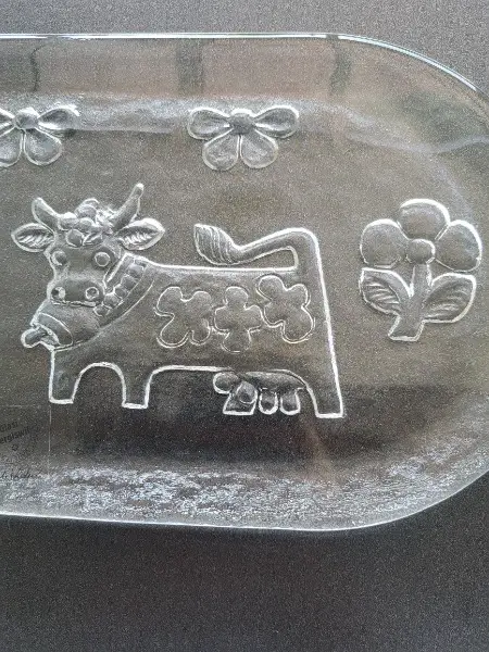 sehr schwer und massiv verziert mit 2 Kühen und Blumen