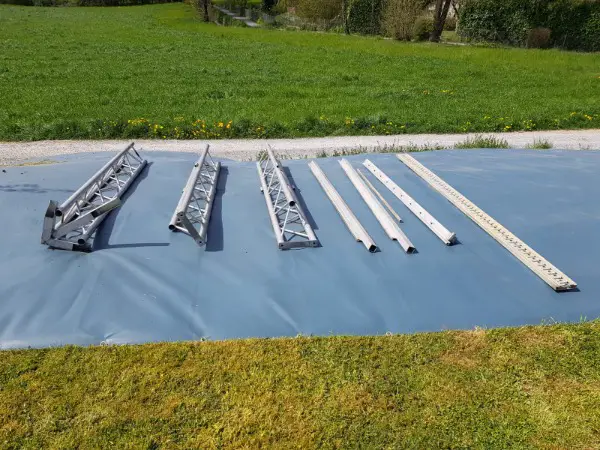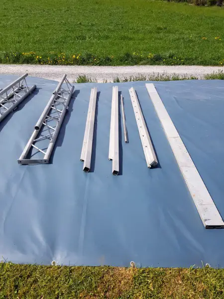 Zum Verkauf stehen bestens erhaltene Alu Profile, welche noch vor der Corona Zeit und den damit verbundenen Friktionen in den Lieferketten hergestellt wurden. Sie dienten als Bestandteil einer mobilen Bar. Die Länge der einzelnen Träger variiert von ca. 1.50 bis ca. 3.35 Meter. Die Vierkantrohre haben einen Innendurchmesser von rd. 4.8 cm und einen Aussendurchmesser von rd. 5 cm. Es ist beabsichtigt, sämtliche Aluminium Stützen als Paket zu verkaufen. Sofern Sie lediglich an einzelnen Teilen interessiert sind, wollen Sie sich mit uns in Verbindung setzen. Der hier angebotene Preis bezieht sich auf das gesamte Paket. Der Artikel eignet sich mit Sicherheit für
