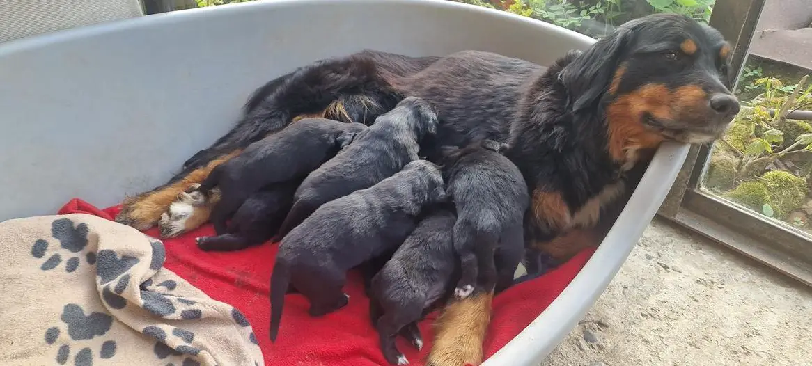 Mama ist ein dunkler Golden Retriever - Berner Sennenhund Mischling und Papa ist ein reinrassiger blonder Golden Retriever. Die Welpen suchen ab Ende Mai ein gutes zu Hause. Die Welpen werden gut sozialisiert, gechippt, entwurmt und auf Wunsch geimpft. Die Welpen dürfen gerne besucht werden, bei Interesse.