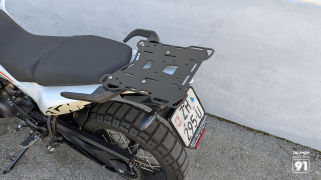 Motorschutzplatte wie auch ein Rack um das Gepäck fest zu zurren ist vorhanden. Navi oder Telefonhalter ist auch schon montiert!