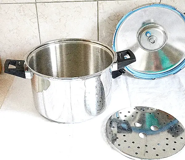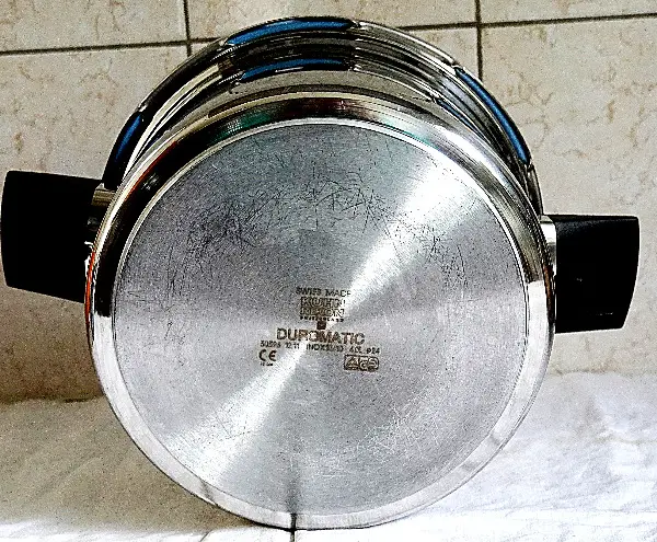 Es ist ein neuer Kuhn Rikon Duromantic Alcea Dampfkochtopf, Inhalt über 5 Liter. Natürlich ist die