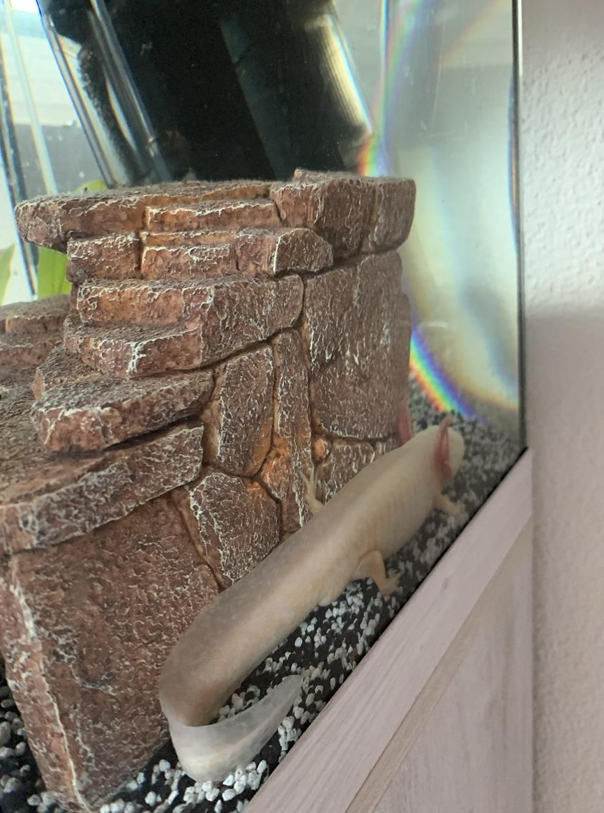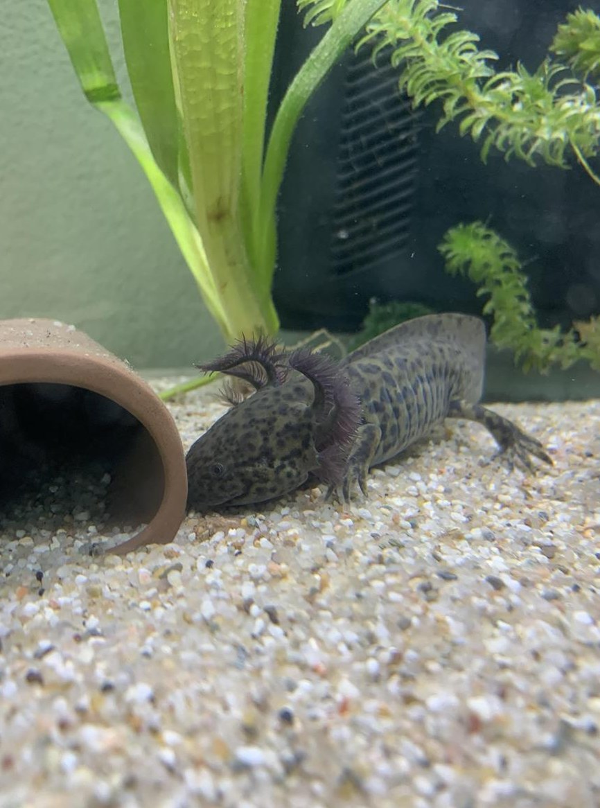 Axolotl suchen ein neues Zuhause. Beide Axolotl sind 1 Jahr alt. Einer ist Gelb der andere braun getigert. Die Axolotl sind nur komplett mit