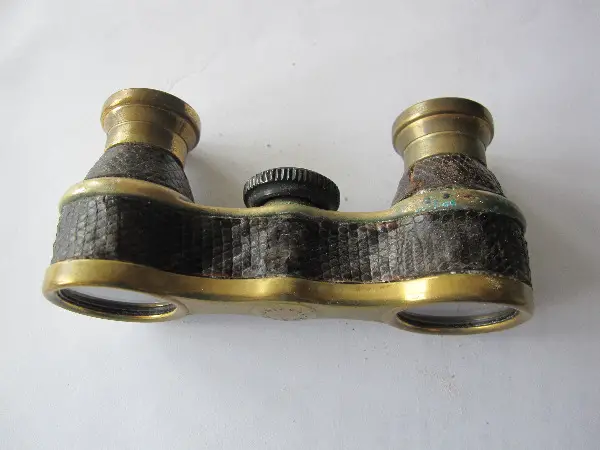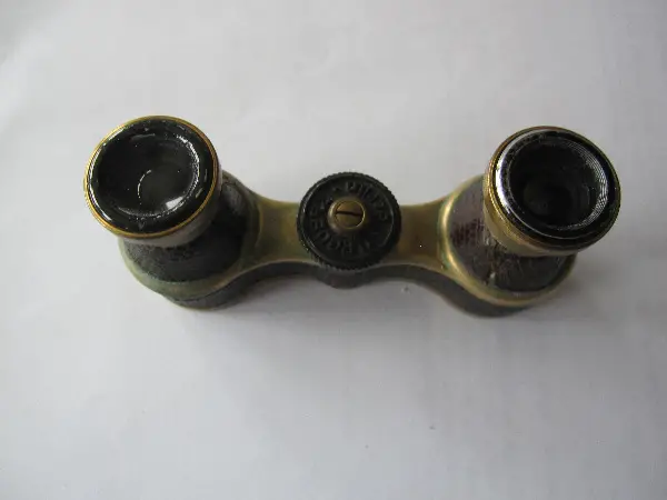 Fernglas / Opernglas/Binocular der Firma C.P. GOERZ, Berlin. In der Mitte befinet sich ein Stellrad für die Schärfenverstellung. Masse: Breite = 9 cm, Höhe = 4.3 cm.