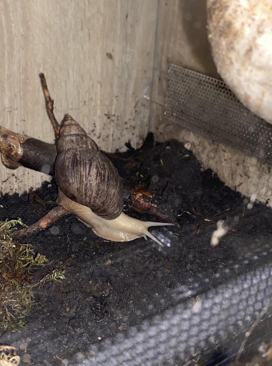 Achatschnecken (Lissachatina Fulica) haben wieder mal nachwuchs bekommen auch der nächste Wurf ist schon geplant daher ist Reservierung erforderlich. Die Schneckenbabys werden im Alter von 2 Wochen bis 2 Monate alles dabei. Wenn sie noch gar keine Erfahrung haben kläre ich sie gerne über die Haltung der Achatschnecken auf. Auch schon die Jungtiere versuch ich dran zu gewöhnen das man sie auf die Hand nimmt dennoch können sie erschrecken und sich dann im Häuschen verstecken.