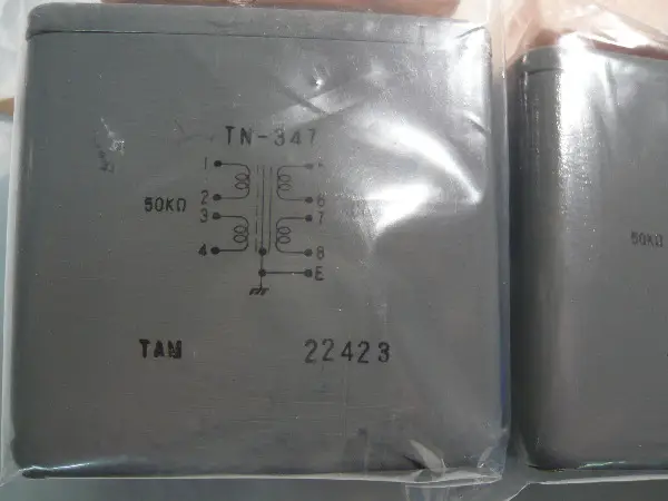 Ein Paar Tamura TN-347 Transformer. Heute schwer zu finden. Ich habe ein Schema eines Sakuma Phono-Pre beigelegt, mit 5691 Röhren und eben den TN-347 Transformer. Eigentlich wollte ich den Mal bauen, habe das Projekt dann vergessen und jetzt verkaufe ich diese Transformer wieder.