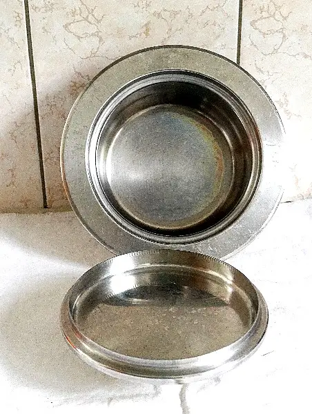 Es ist ein Kuhn Rikon Durotherm (Doppelwandig) , Kochtopf. Bitte beachten Sie, dass der Kochtopf schon sehr wenig in Gebrauch gestanden ist! Inhalt 0.8 Liter, Masse: H 7cm, Ø19cm.
