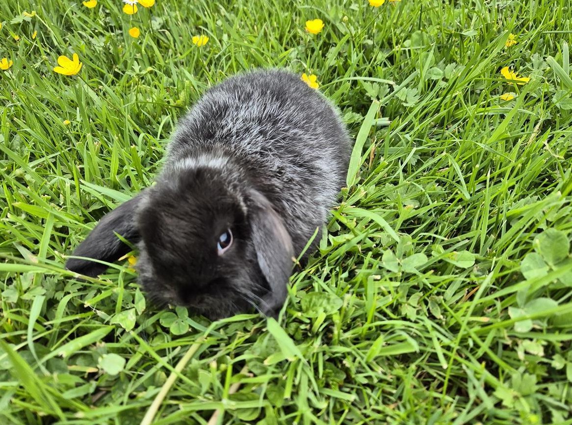 Der letzte der Minilop Jungen sucht noch ein schönes Plätzli, Farbe Schwarz mit grau. Der