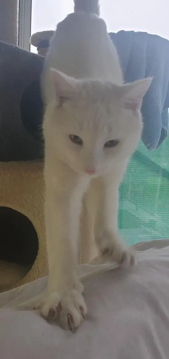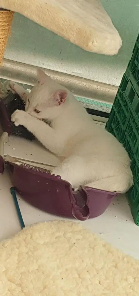 Kater Fridolin ist ein neugieriger, fröhlicher, sehr zahmer und auch sensibler, schneeweisser, 1-jähriger Kater mit goldenen Augen. Der Kater ist kastriert, gechipt und mehrmals entwurmt. Der Kater ist sich an die