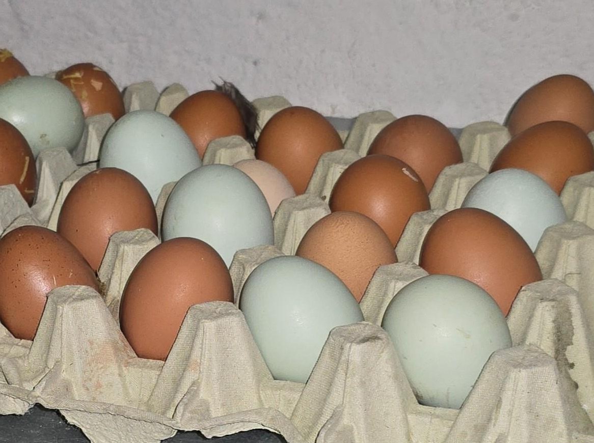 Marans, Blaue, Grünleger und Hybridhennen. Der Hahn ist ein Brahmen. Welche Bruteier von welchen