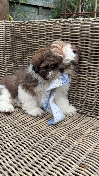 Aiden aka Sämi ist ein Welpe aus der vom Kleinhundeclub kontrollierten Zucht „Regi’s ShihTzu Paradise“ in der Schweiz. Entwurmt, geimpft, gechipt. Seine Farben sind Tricolore mit breitem weissen Kragen, 4 weissen Pfoten. Er ist mit 4 Geschwister aufgewachsen. Er ist sehr verspielt, verschmust, neugierig, sozialisiert, nicht ängstlich oder schreckhaft, kennt schon vieles! Suchen eine Familie mit viel Zeit, Liebe und Aufmerksamkeit!