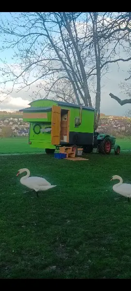 Bauwagen wurde vor 1,5 Jahren neu aufgebaut. Beim Neuaufbau haben wir bewusst alles einfach und praktisch gebaut.