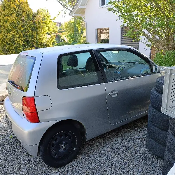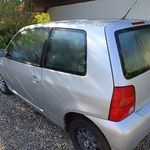 VW Lupo silber grau .Guter Zustand, aber läuft nicht an und Riss in Frontscheibe. Muss aufgeladen werden. aber: Ev. bringen wir ihn zum Laufen! ! !